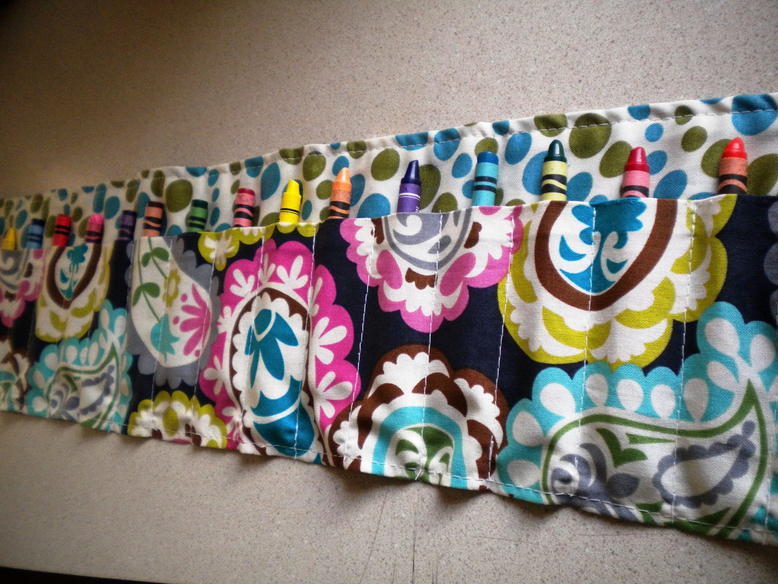 Whew, it's been a while since my last post, but I've been busy playing. I got a Cuttlebug and a Sewing machine for christmas! So yesterday I went to get some embossing folders and fabric. I picked up the cutest fabric, but didn't have a clue what I was going to do with it yet. Then I remembered a cute tutorial I'd seen for a Crayon Roll up a while back. So I decided to make that my mission today. I am so pleased with how it turned out! I just followed the tutorial found here. Next up, one to hold some Color Wonder Markers!