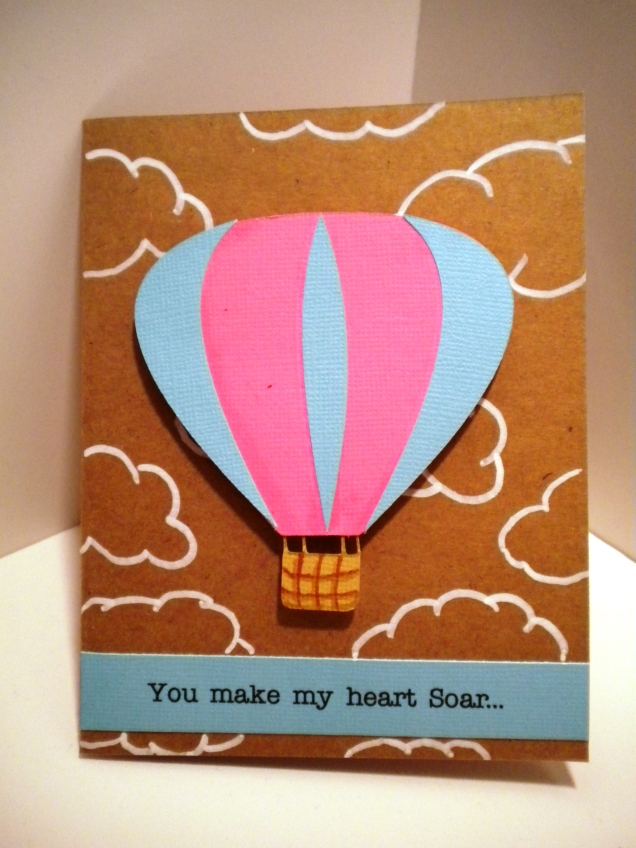 I've been trying to decide what to do for my husband's Valentine's card for a while now, I finally just decided on this simple design. At first, the balloon looked a little boring on a plain kraft paper background, so I used my white marker to create clouds! I love the simple look.